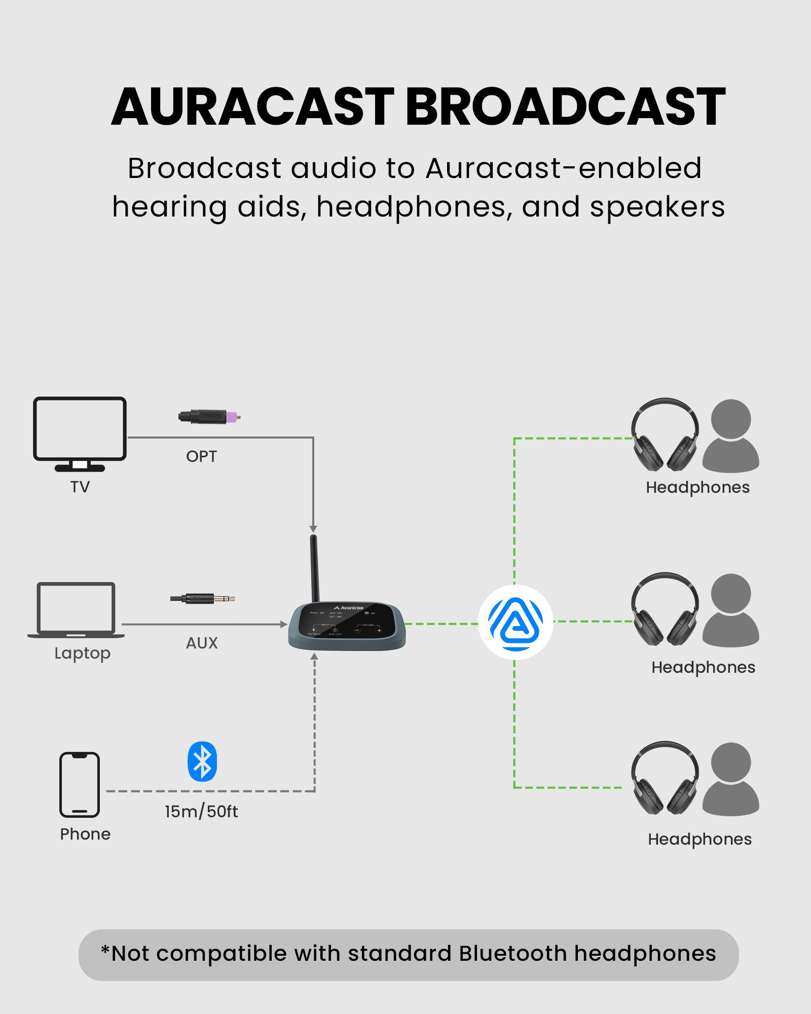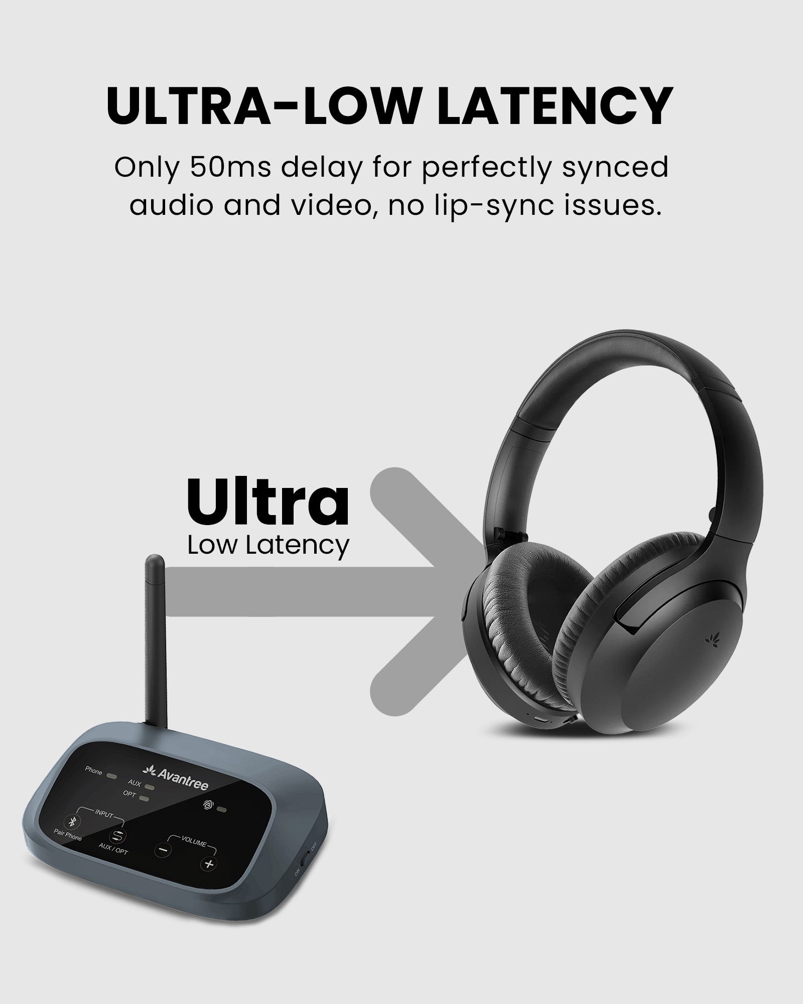 For better audio-visual synchronization, use together with Avantree products featuring: