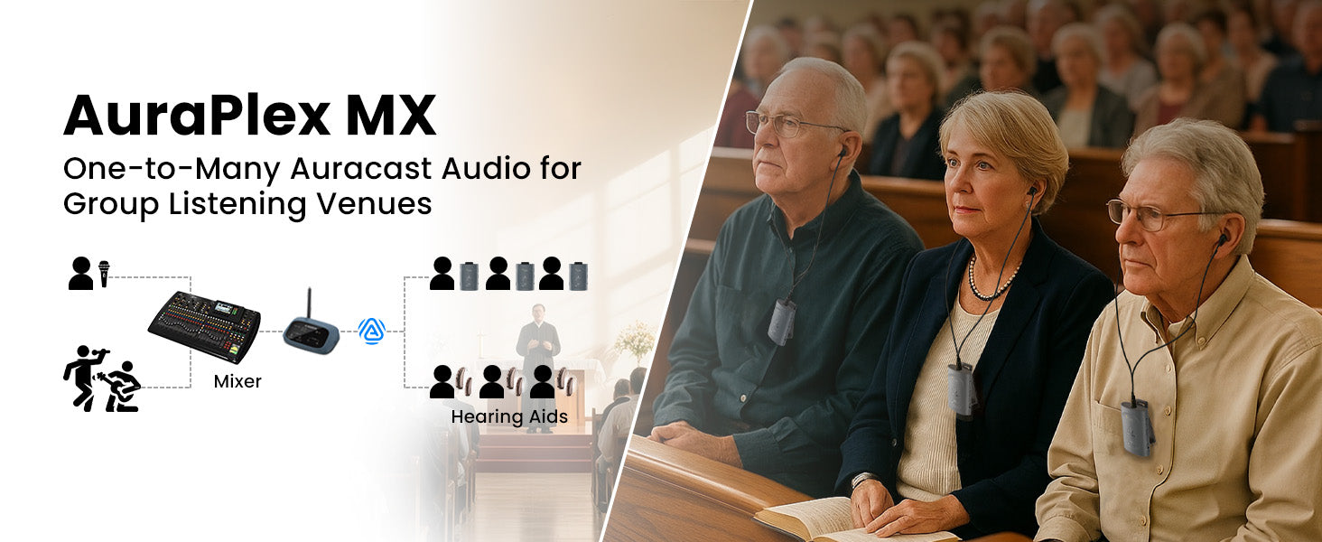 A: AuraPlex MX is ideal for venues that require group listening, such as churches, classrooms, lecture halls, community spaces, guided tours, and events.