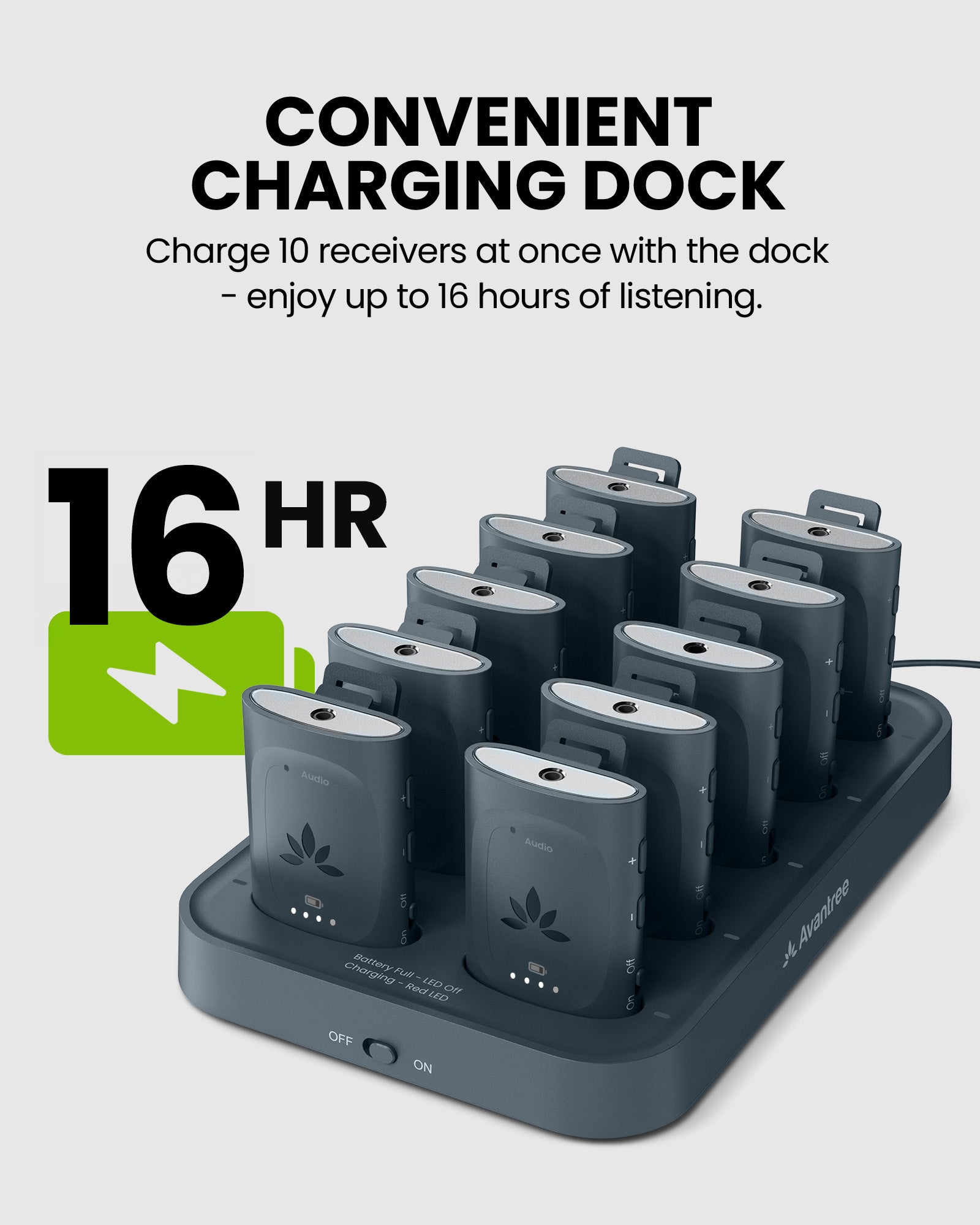 10-Receiver Auracast Assistive Listening System with Charging Dock