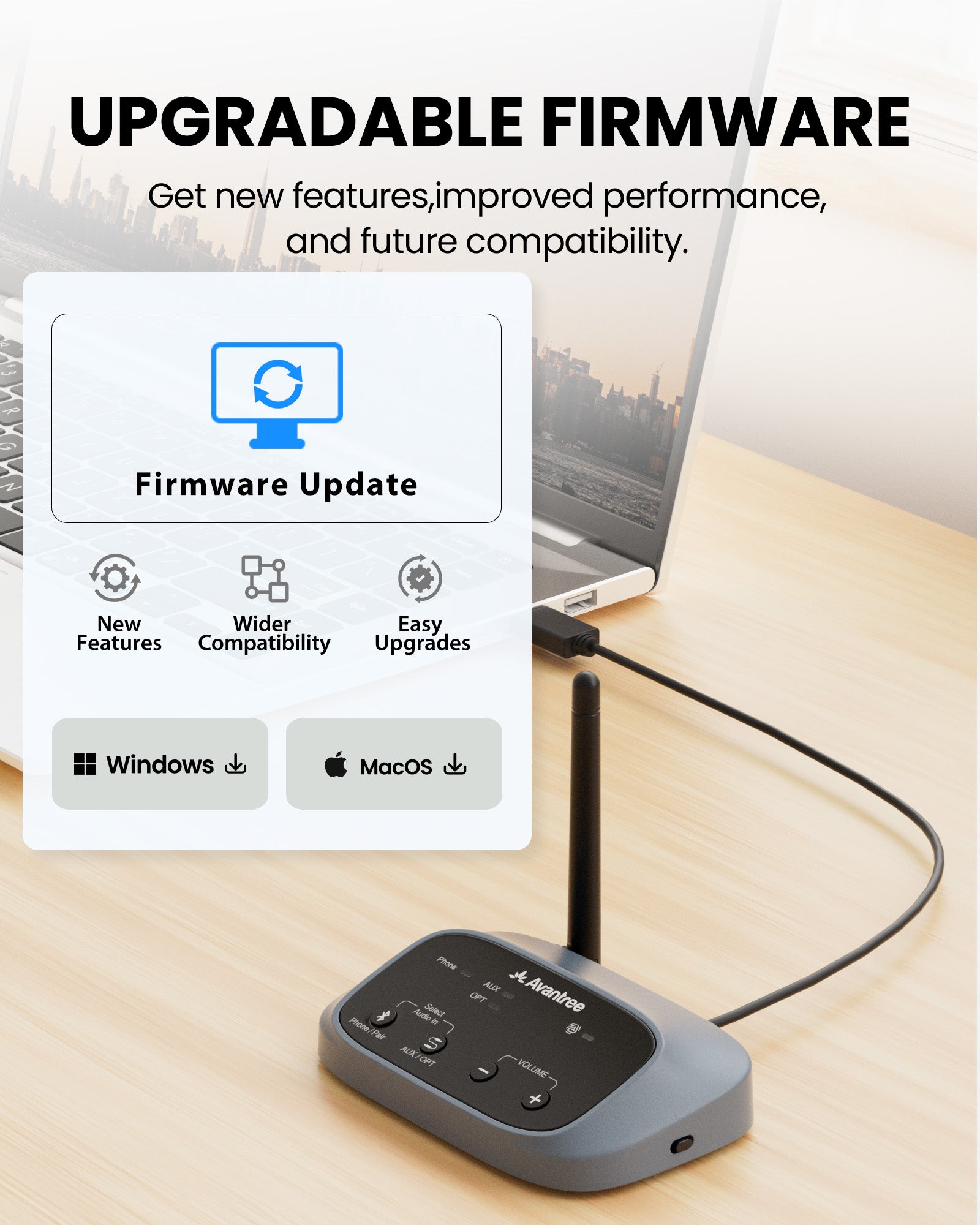 For better audio-visual synchronization, use together with Avantree products featuring: