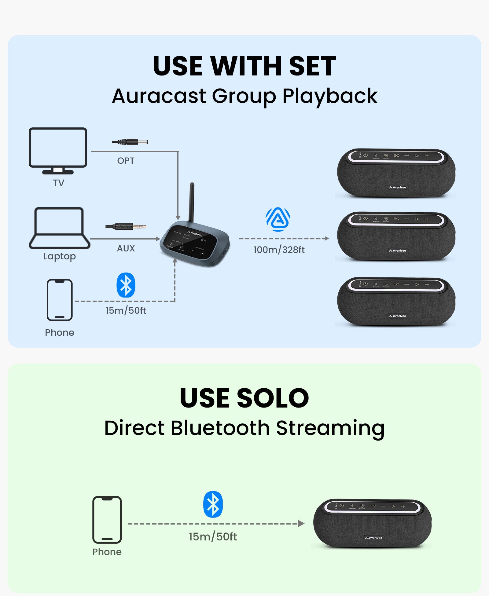 For better audio-visual synchronization, use together with Avantree products featuring: