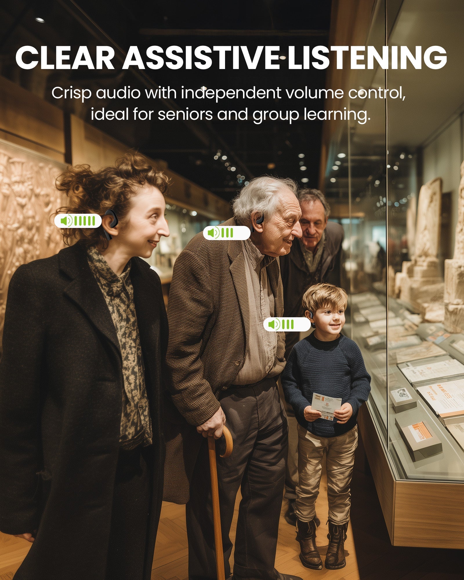 ● Assistive Listening: Ideal for churches, guided tours, classrooms, conferences, and factory visits. Ensures the speaker’s voice is delivered clearly to groups, even in noisy or spacious environments.