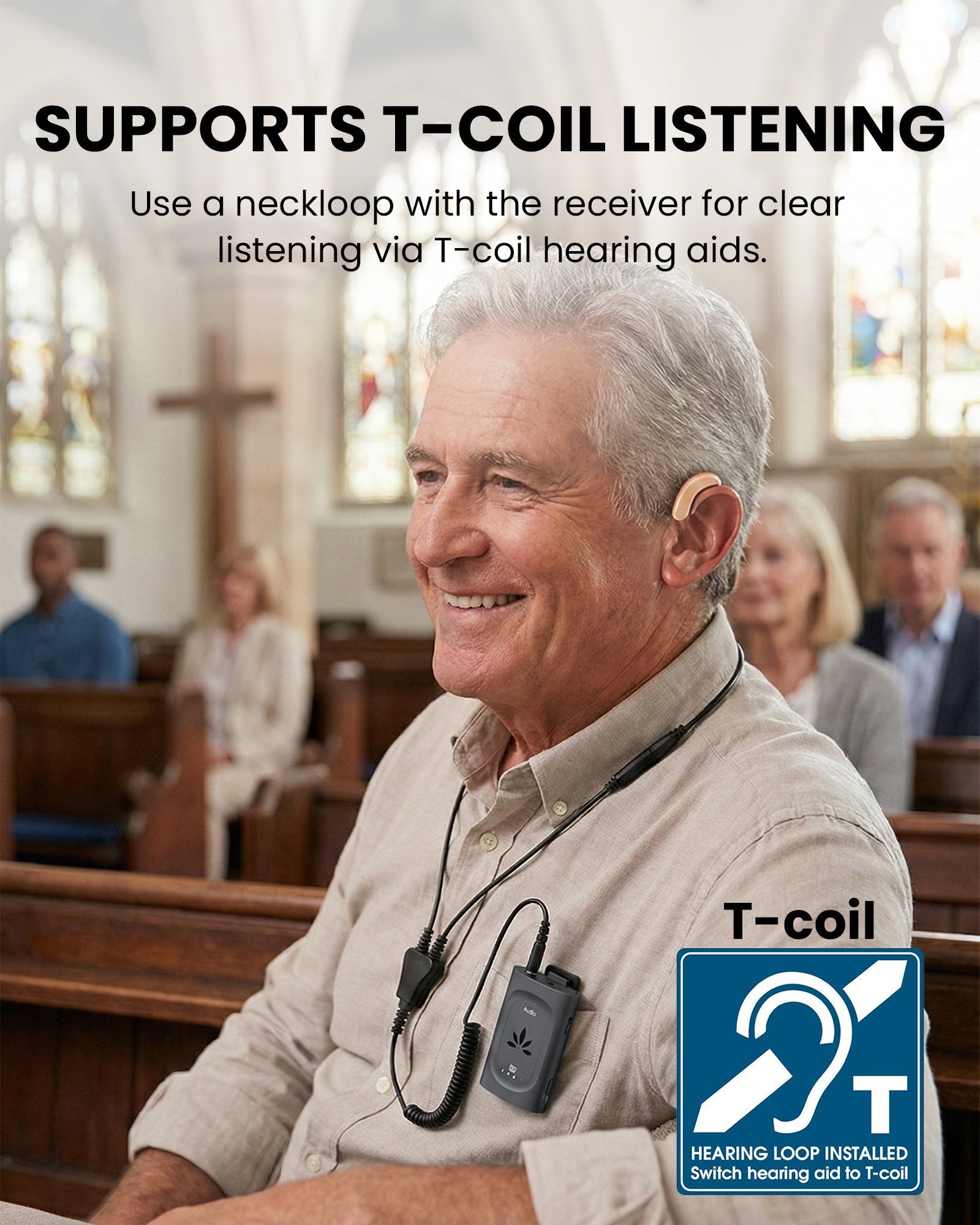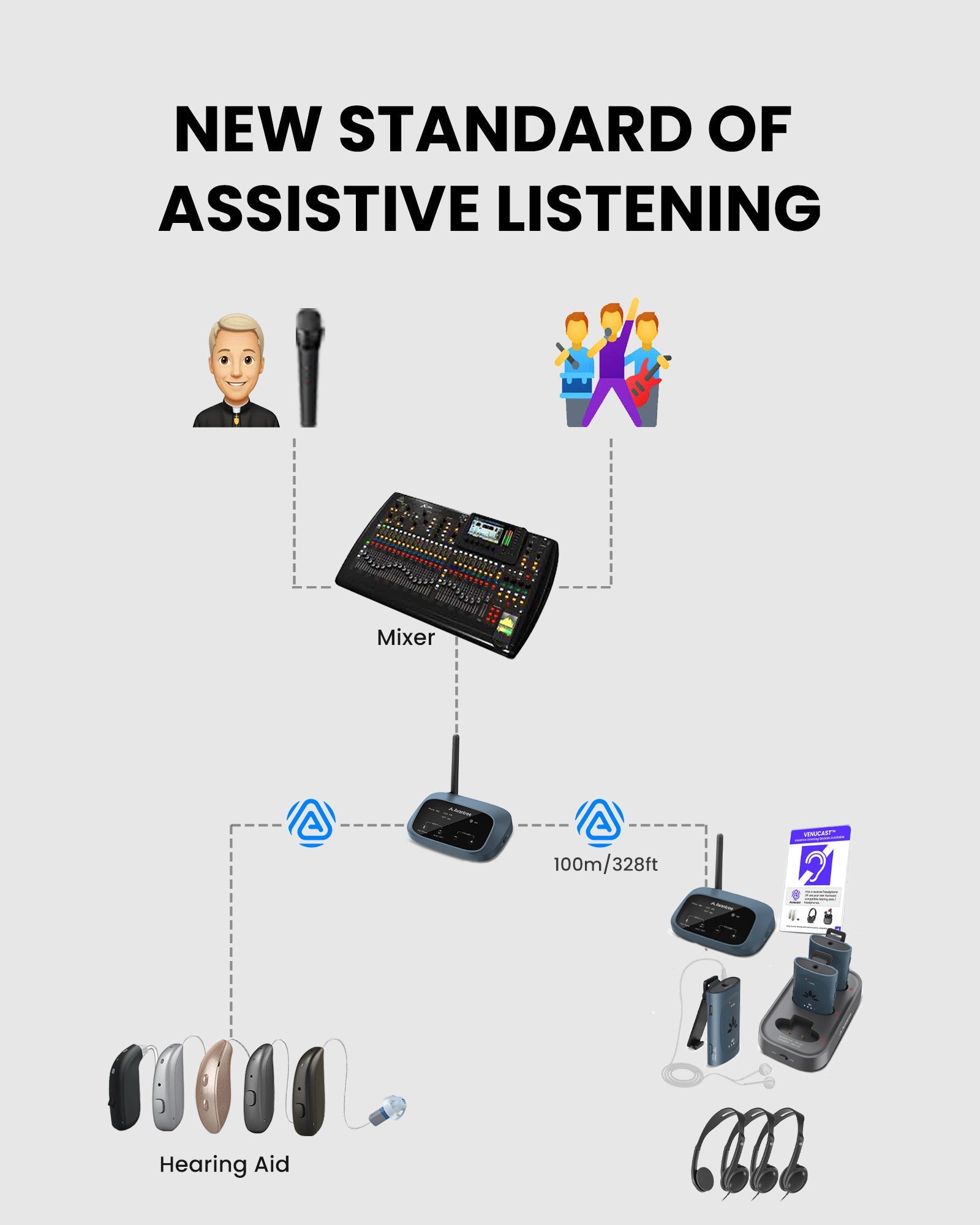 Auracast Bluetooth 5.4 Transmitter Receivers Set, Assistive Listening System One-to-Many Audio