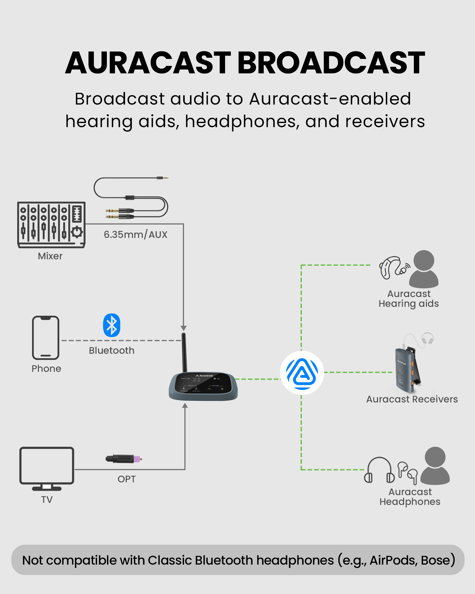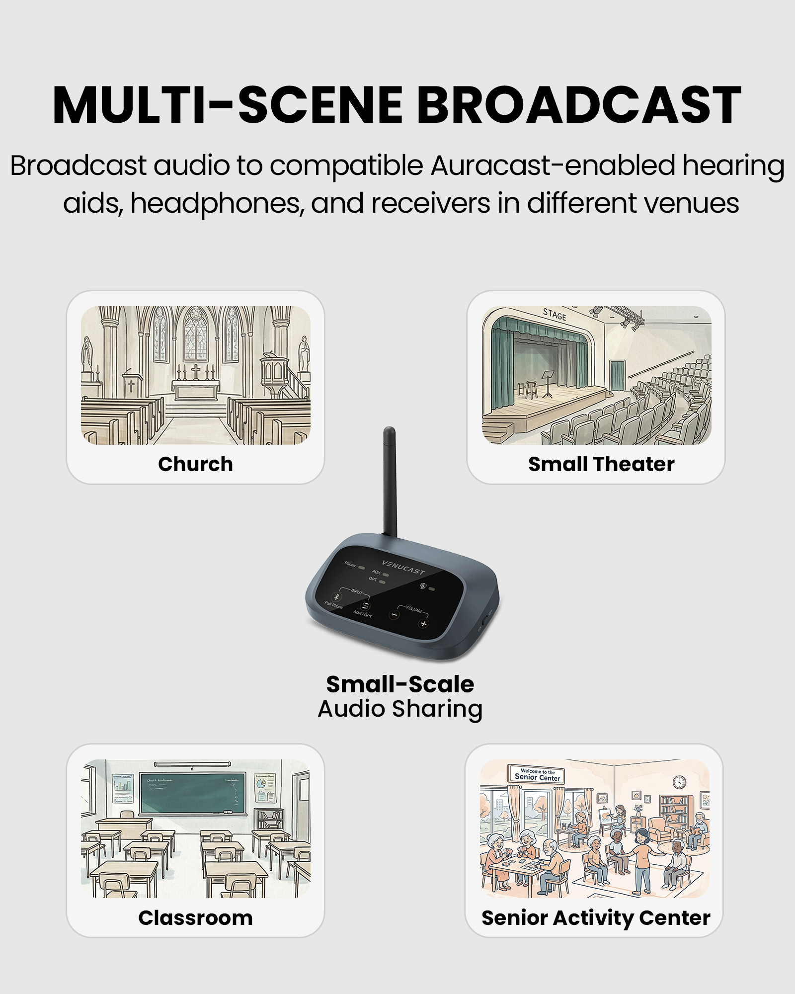 Built on next-generation Auracast™ broadcast audio — open, scalable, and future-ready.