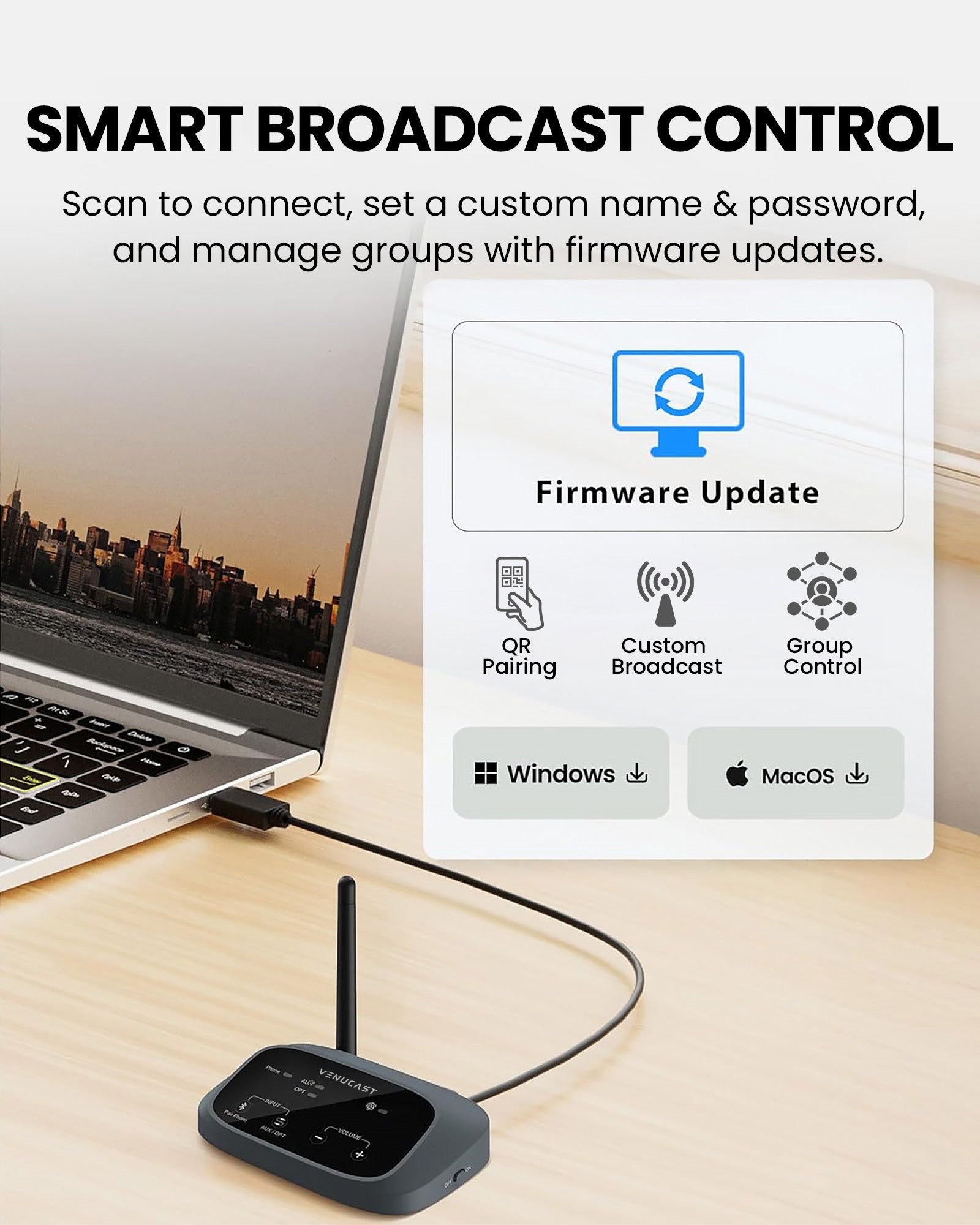 Enable large-scale audio streaming with Auracast™ — multi-language, multi-channel, and unlimited listeners across conferences, venues, and live events.